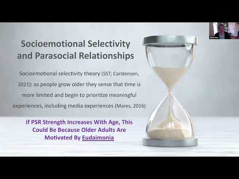 Nonetheless, there is a reason to expect that PSRs might increase with age. Socioemotional selectivity theory (SST; Carstensen, 2021) explains that as people grow older they sense that time is more limited and begin to prioritize positivity and meaningful experiences in their personal relationships. SST also explains how people’s media choices change with age. For instance, Mares et al. (2016) showed that compared to younger adults, older adults found more meaning in media that offered feelings of warmth, while younger adults found more meaning in more suspenseful content. In other words, age may be positively associated with eudaimonic motivations for media use (e.g., seeking meaning and personal growth), including the development of parasocial relationships.