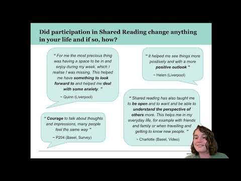 As indicated by Billington et al., “[there is a] need for further research into the reported quality-of-life changes and suggested mechanisms whereby [Shared Reading] may affect improvements” (2016, p. 26). In this presentation, the emphasis will be precisely on the mechanisms and effects of Shared Reading in groups of healthy young adults ( between 18 and 25 years old), which have been under-researched. So far, Shared Reading as an intervention has mostly been studied with clinical samples, such as people suffering from chronic pain, depression or dementia (Billington et al., 2010; 2013; 2016), where the mean age lies much higher. This study compares the effects of participation in Shared Reading on well-being in two groups of young adults: one group in German-speaking Switzerland and one group in the UK, where the intervention originates and where most prior research on the efficacy of Shared Reading as a mental health intervention has been conducted.